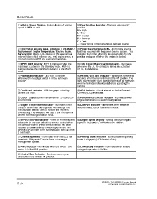 o Check Engine MIL - Illuminates when the ECU has 2) Parking Brake Indicator - Illuminates when parking