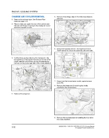 CHARGE AIR COOLER REMOVAL 5. Remove three hinge clips t from the transmission