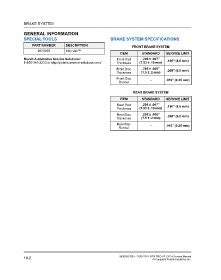 SPECIAL TOOLS BRAKE SYSTEM SPECIFICATIONS