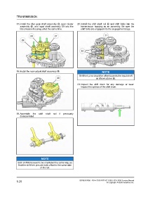 17.Install the idler gear shaft assembly 2&, gear cluster 20.Install the shift shaft rail 3! and shift forks into the